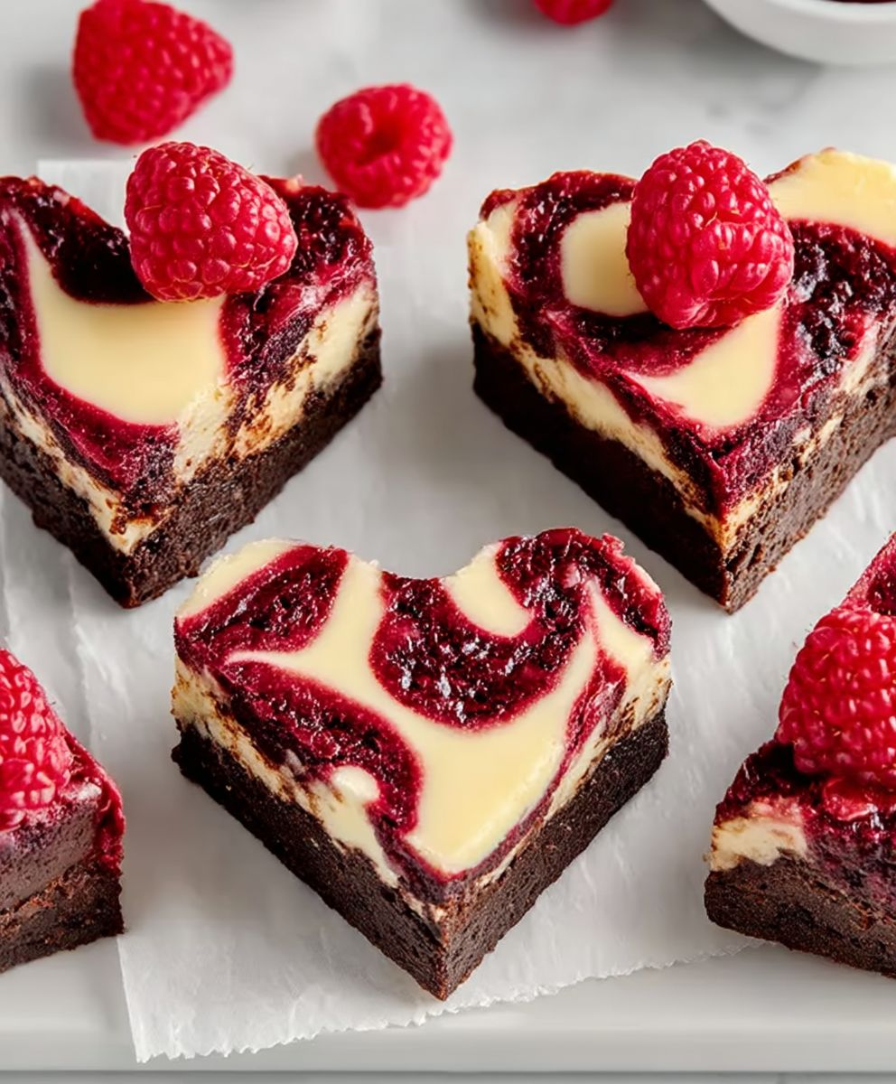 Heart Shaped Brownies with Raspberry Swirl | Cheesecake Valentine Dessert