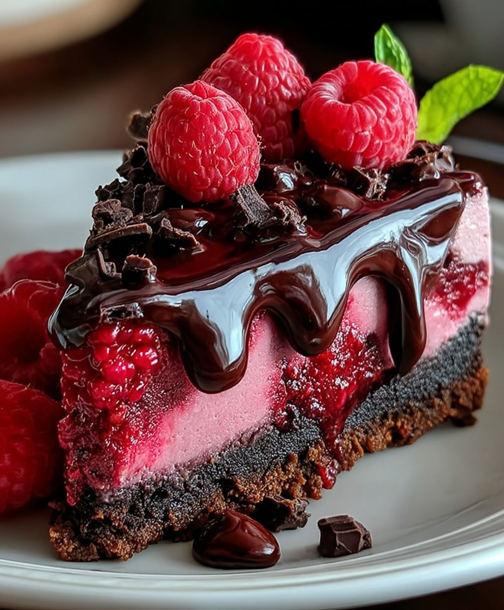 Indulge in Decadent Dark Chocolate Raspberry Cheesecake