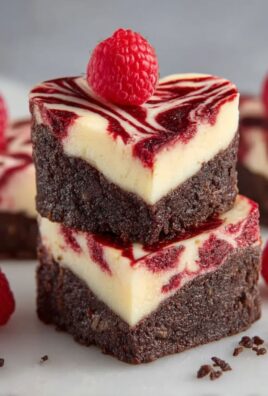 Substitute strawberries or blueberries for raspberries, adjusting the sugar slightly. Use white chocolate chips instead of dark chocolate in the brownie base for a lighter flavor profile. A splash of orange extract in the cheesecake adds a surprisingly zesty twist if you dare to experiment. Try adding finely chopped pecans to the batter for a crunch.