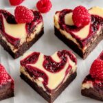 Pour the brownie batter into a greased and parchment-lined 9×13 inch baking pan. Use a spatula to spread it evenly. Bake for exactly 15 minutes. This partial bake provides a solid foundation. Remove the pan, then gently dollop the cheesecake mixture evenly over the top of the hot brownie base. Spoon the cooled raspberry swirl mixture over the cheesecake dollops. Use a butter knife or skewer to gently create swirls, ensuring you don’t drag the swirl down to the bottom layer. Return the pan to the oven and continue baking for 25–30 minutes, or until the cheesecake is set and only the very center has a slight wobble. Let them cool completely before cutting out your perfect Heart Shaped Brownies.