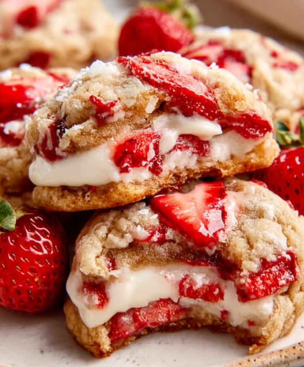 Indulge in these delightful Strawberry Cheesecake Cookies, featuring a soft and chewy texture with a creamy cheesecake flavor, complemented by fresh strawberries and optional white chocolate chips. Perfect for any occasion, these cookies are sure to impress!
